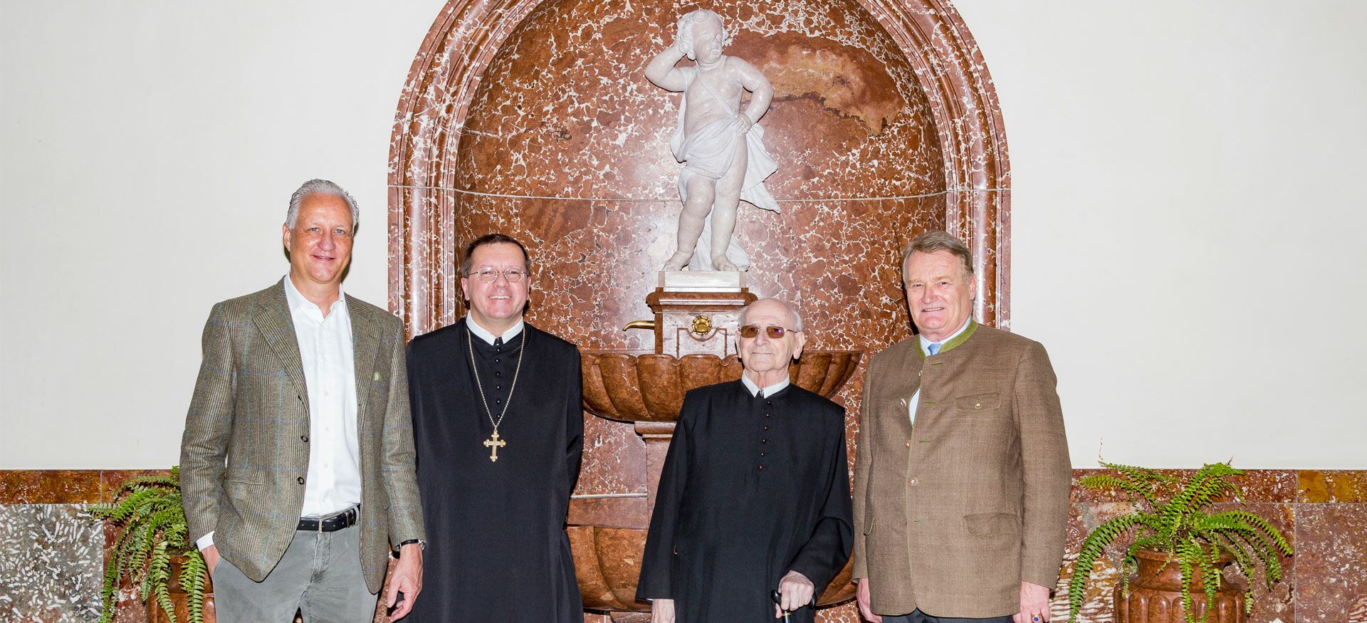 (im Bild v. l. n. r.: Stephan Barth, vertritt die Interessen von Gabriella Cellina Fuchs-Barth, Abt Johannes Perkmann, Alt-Abt Nicolaus Wagner und Dr. Heinrich D. Kiener)
