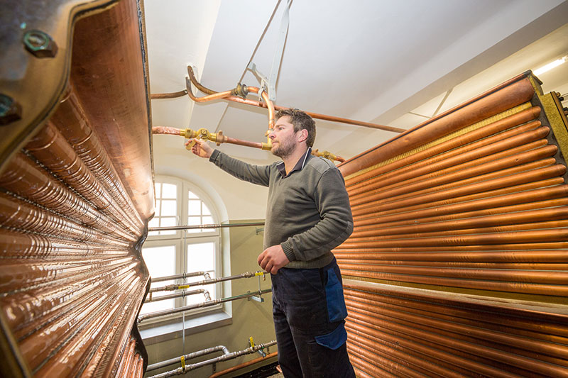 Im letzten Kühlschiff und Berieslungskühler Österreichs erfolgt die offene Kühlung der Bierwürze.