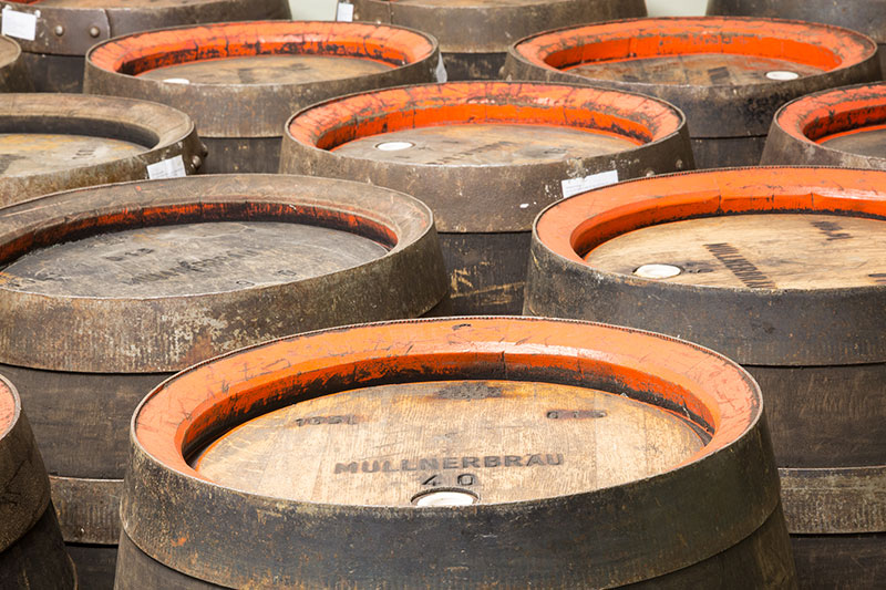 Hier erfolgt die Abfüllung in Holzfässer bzw, für die Gastronomie in KEG-Fässer. Im Flaschenkeller wird das Augustiner Bier in Flaschen abgefüllt.