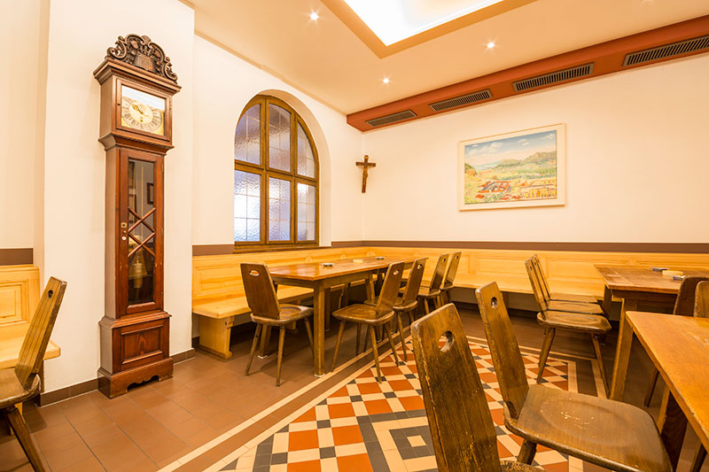 Bis Ende der 50-iger Jahre war hier das Konferenzzimmer der angrenzenden Schule beheimatet - daher der Name Lehrerstüberl.Sitzplätze40